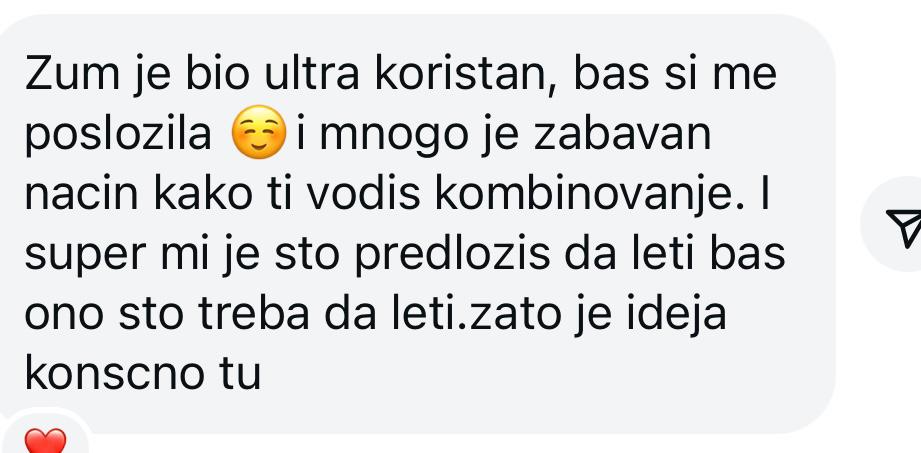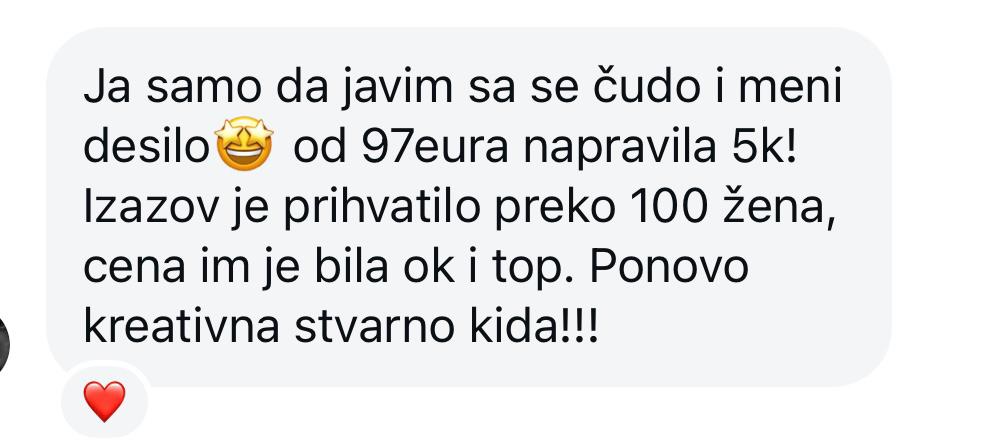 Tvoja kreativnost u potrazi za biznis idejama me ostavlja bez teksta. Najzanimljivije mi je što si uspela da me navedeš da iskopam sve iz sebe i spojim naizgled nespojivo.